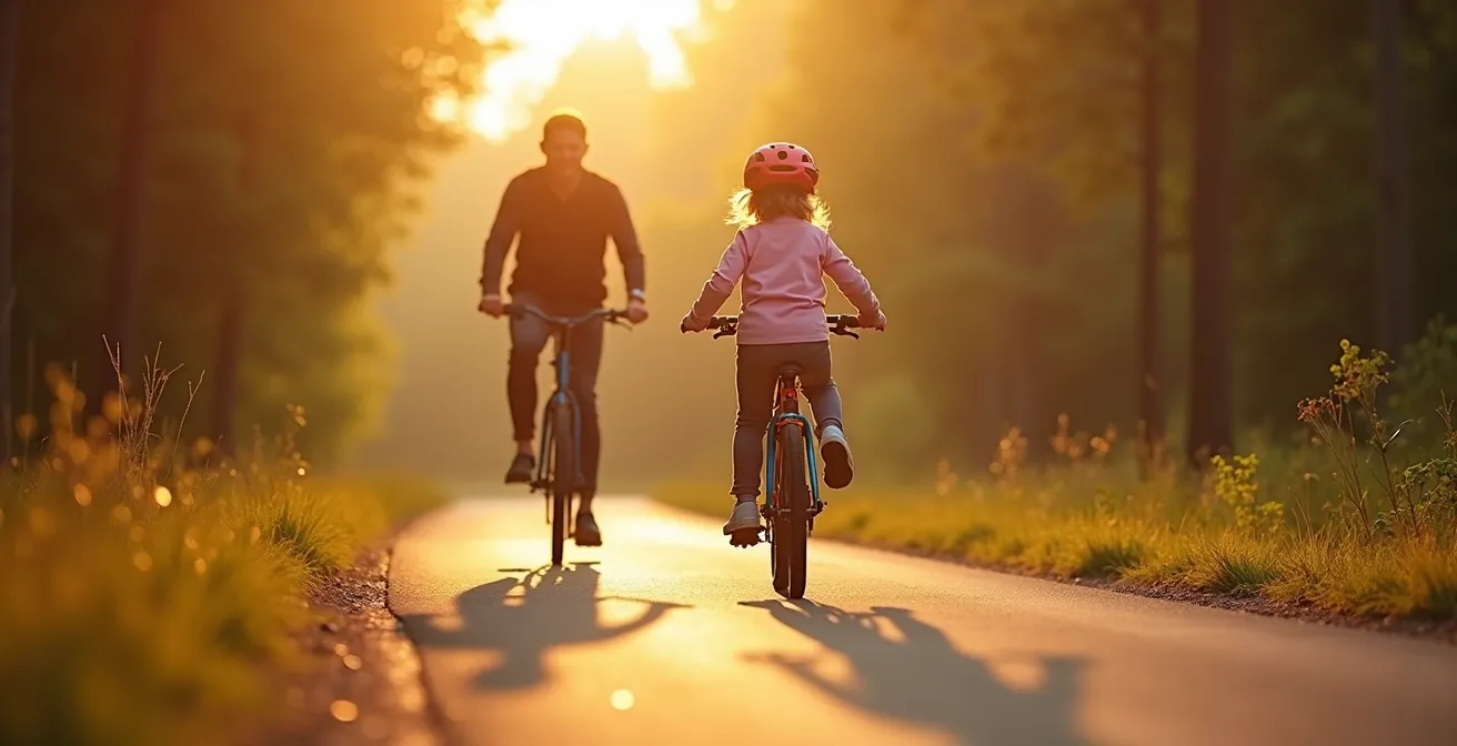 Voir son enfant s’élancer à vélo, gagner en vitesse et en autonomie est un mélange puissant de fierté et d’appréhension. Le désir de le voir explorer le monde se heurte à une angoisse bien légitime : et s’il lui arrivait quelque chose ? Cette peur, souvent, nous pousse à accumuler les protections : casque, genouillères, gilet fluo… Nous appliquons les conseils de bon sens, vérifions les freins et nous nous contentons des pistes cyclables balisées. Pourtant, au fond, nous sentons que cette approche a ses limites. Elle brime le goût de l’aventure et ne prépare pas réellement l’enfant à l’imprévu.
