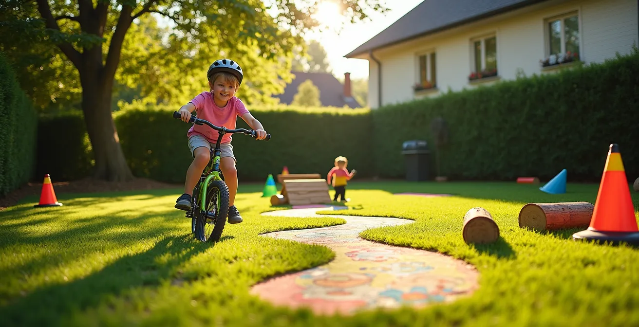 Votre enfant adore son vélo, il a trouvé son équilibre et semble prêt à conquérir le monde. Mais une fois l’euphorie des premiers tours de roue passée, le jardin peut vite devenir un circuit répétitif. Comment l’aider à aller plus loin, à gagner en confiance et en agilité, sans que cela devienne une corvée ? Spontanément, beaucoup de parents pensent à installer quelques plots pour un slalom improvisé ou à tracer une ligne à la craie pour s’entraîner à freiner. Ces idées sont bonnes, mais elles ne constituent pas une méthode.